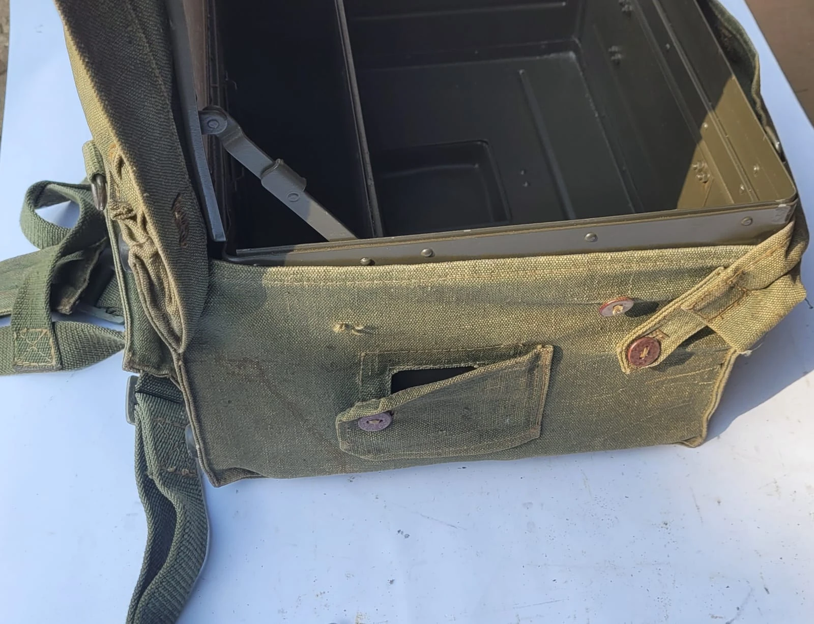 Metalowa skrzynka wojskowa w komplecie z oryginalnym pokrowcem ochronnym