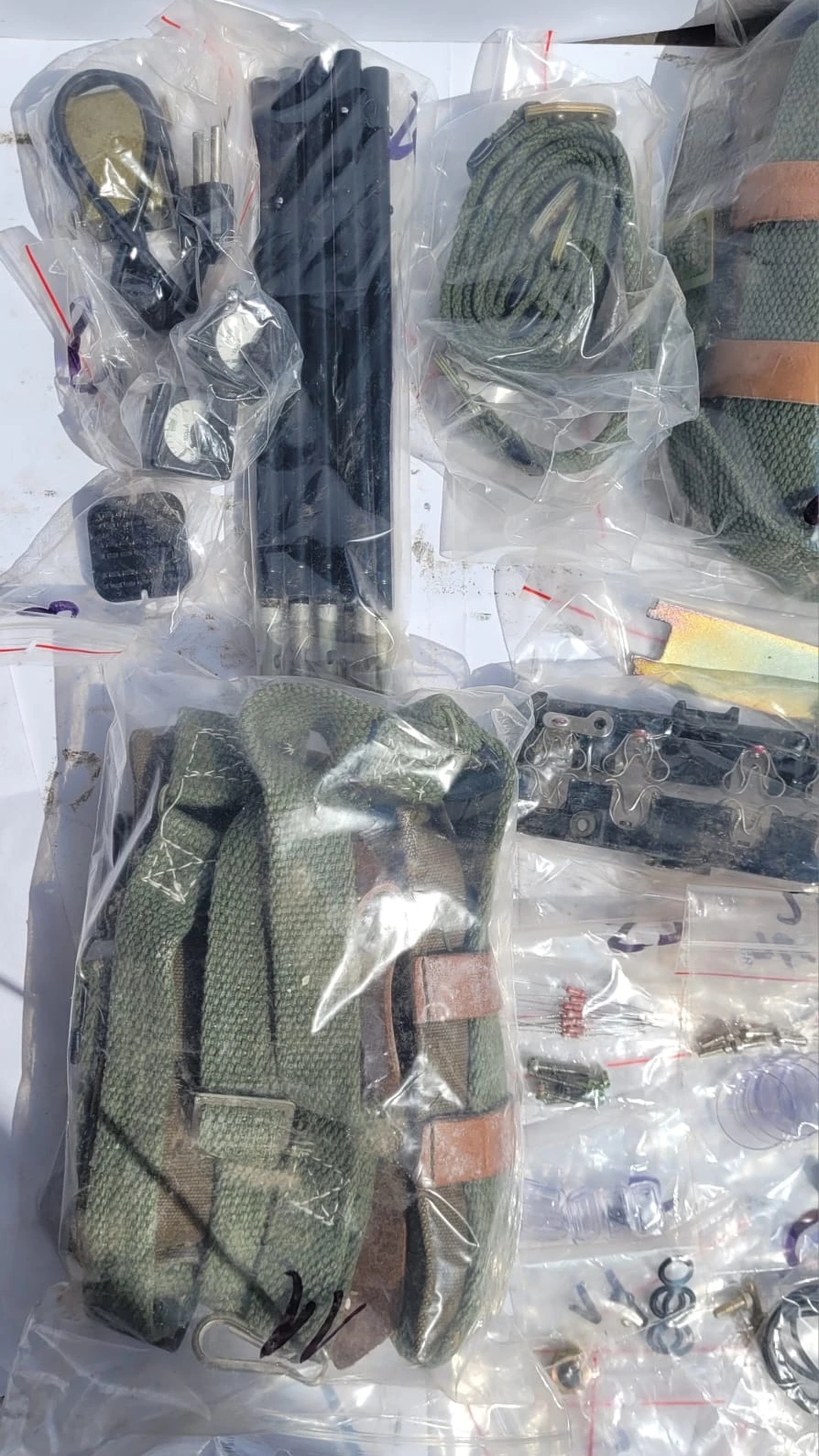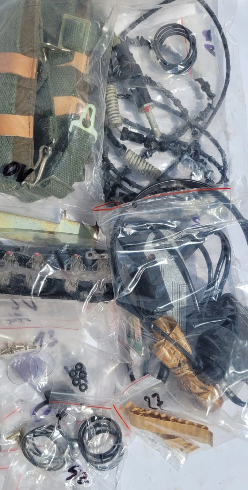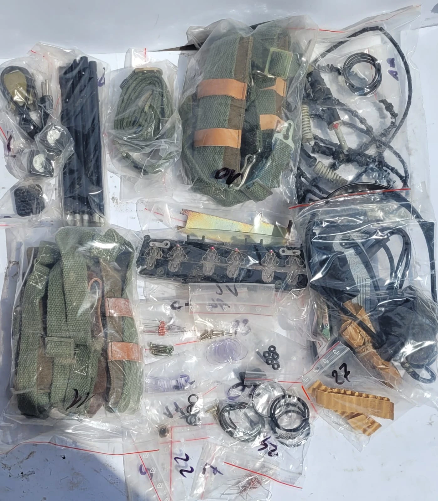 Zestaw części zapasowych i wyposażenia do radiostacji R-107, klasycznego sprzętu łączności wojskowej. Pakiet zawiera elementy eksploatacyjne i akcesoria niezbędne do utrzymania sprawności urządzenia.