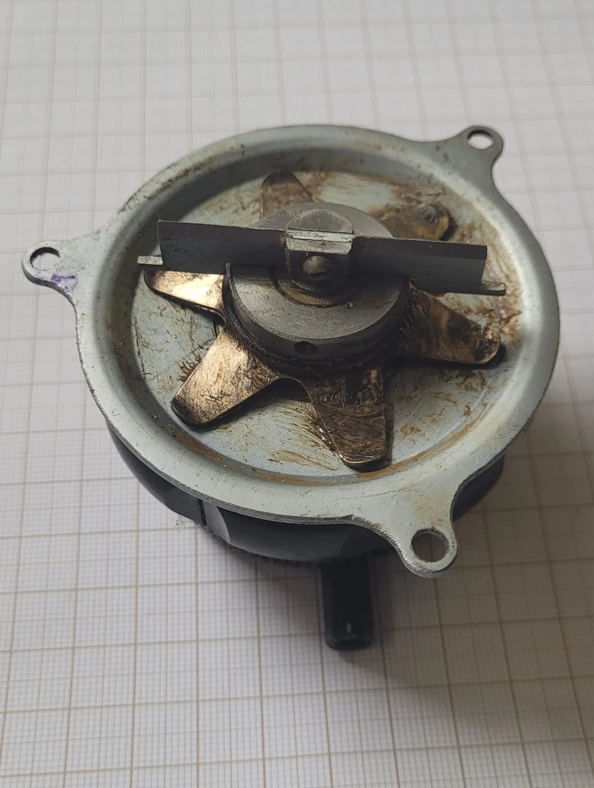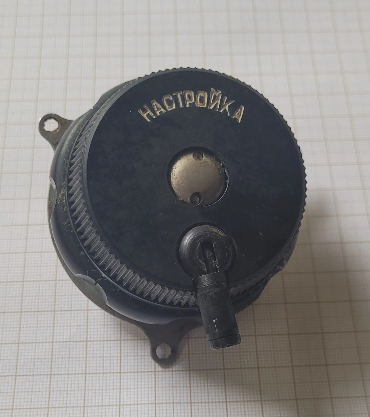 Oryginalne pokrętło wernierowe (верньер) produkcji radzieckiej, oznaczane często napisem „НАСТРОЙКА” (strojenie / regulacja). Klasyczny element stosowany w sprzęcie radiotechnicznym do bardzo precyzyjnego ustawiania częstotliwości.