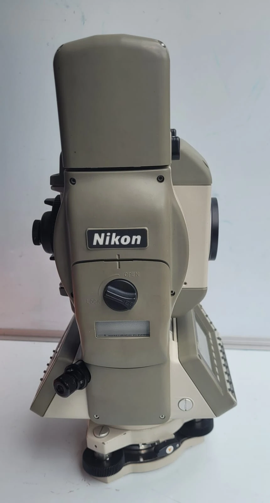 Oryginalny tachimetr elektroniczny Nikon DTM-850, przeznaczony do precyzyjnych pomiarów geodezyjnych i budowlanych. Profesjonalne urządzenie wykorzystywane w pracach terenowych wymagających wysokiej dokładności.