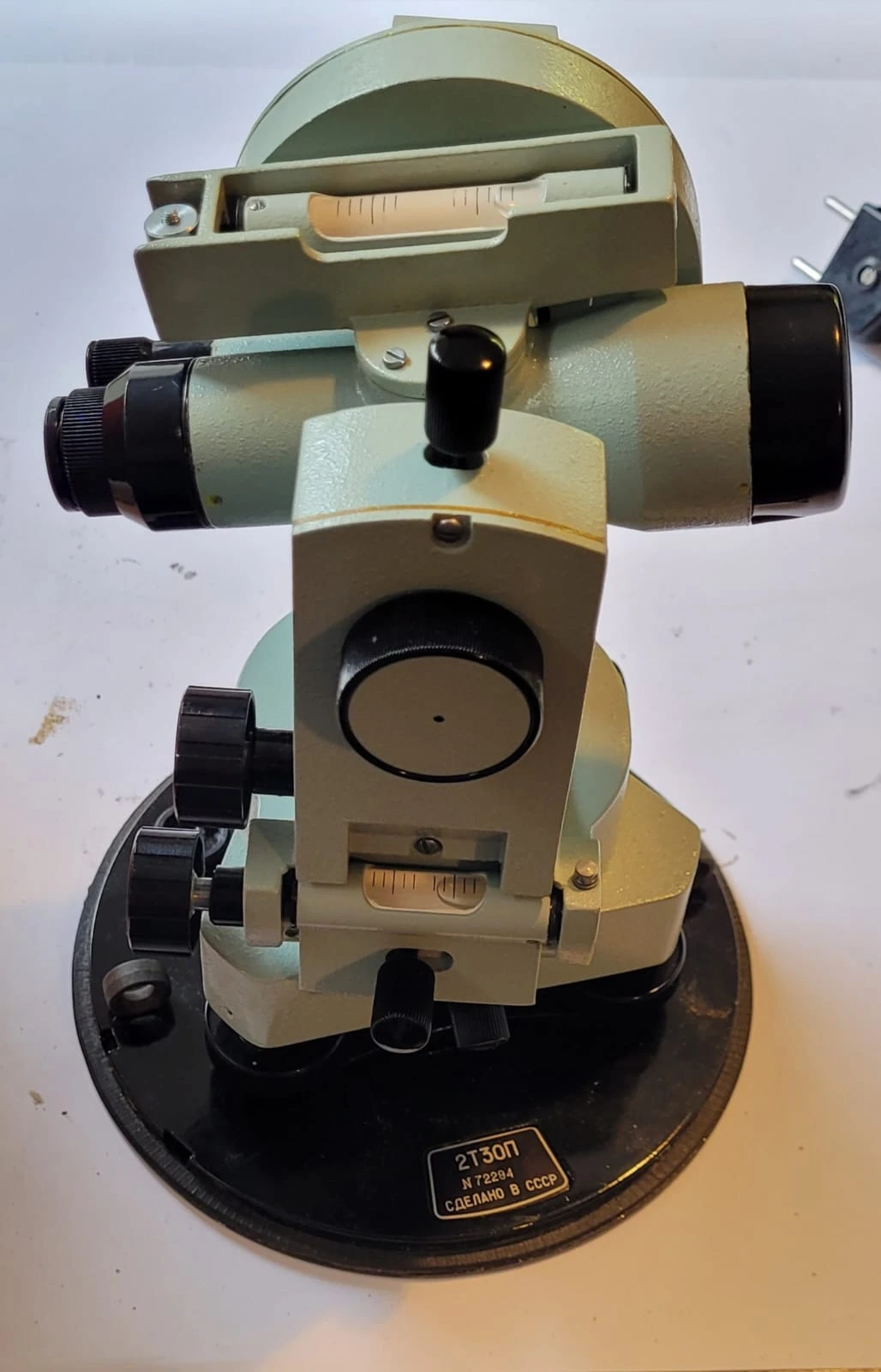 Teodolit 2T30P to precyzyjny instrument geodezyjny produkcji radzieckiej, używany w wojsku oraz pracach inżynieryjnych. Pochodzi z demobilu i służył do pomiarów kątów poziomych i pionowych.