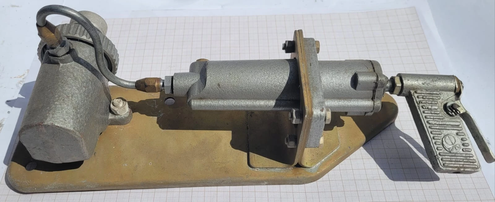 Oryginalne urządzenie do rozruchu silnika typu „Samostart”, stosowane w starszych pojazdach i sprzęcie technicznym do ułatwienia uruchamiania silników w trudnych warunkach. Klasyczny element wyposażenia warsztatowego i wojskowego.