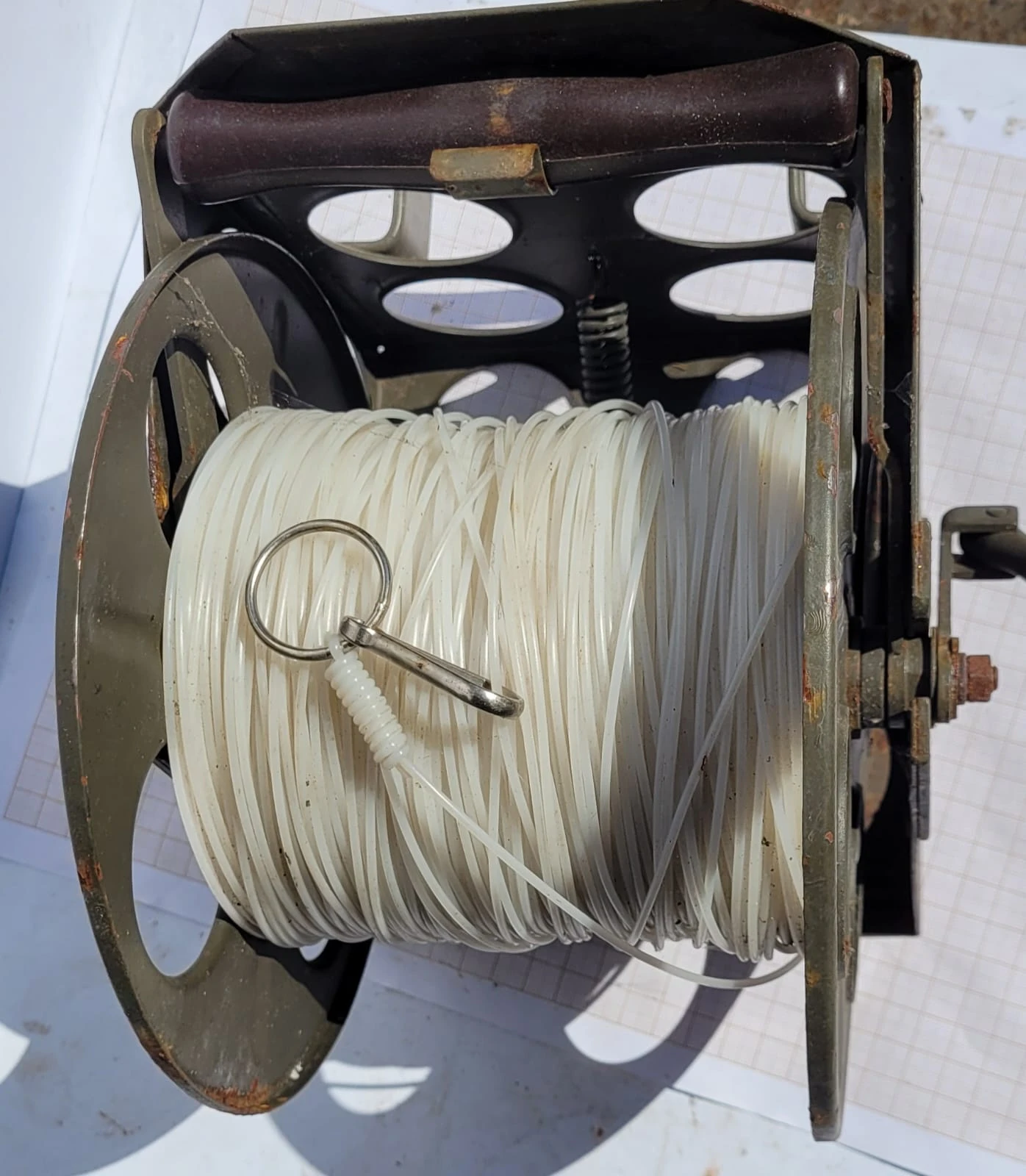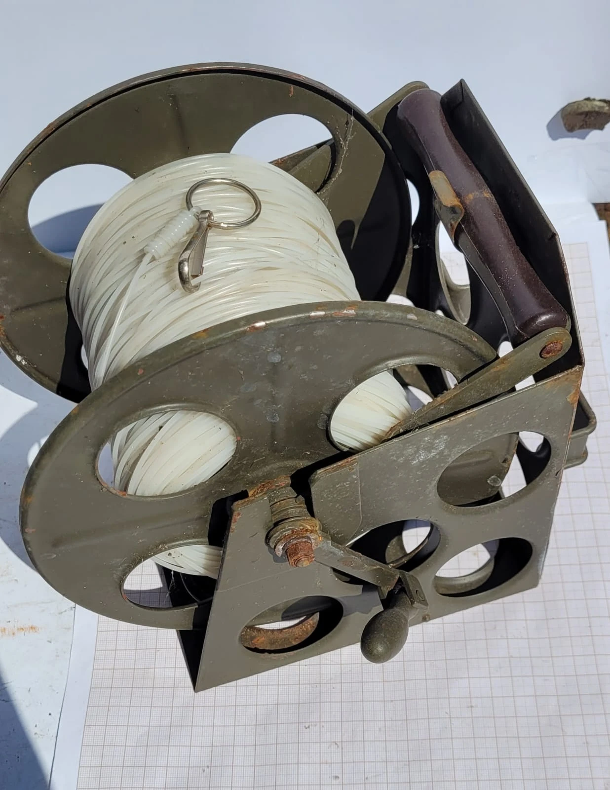 Wojskowy zwijak ręczny z żyłką - kołowrotek polowy