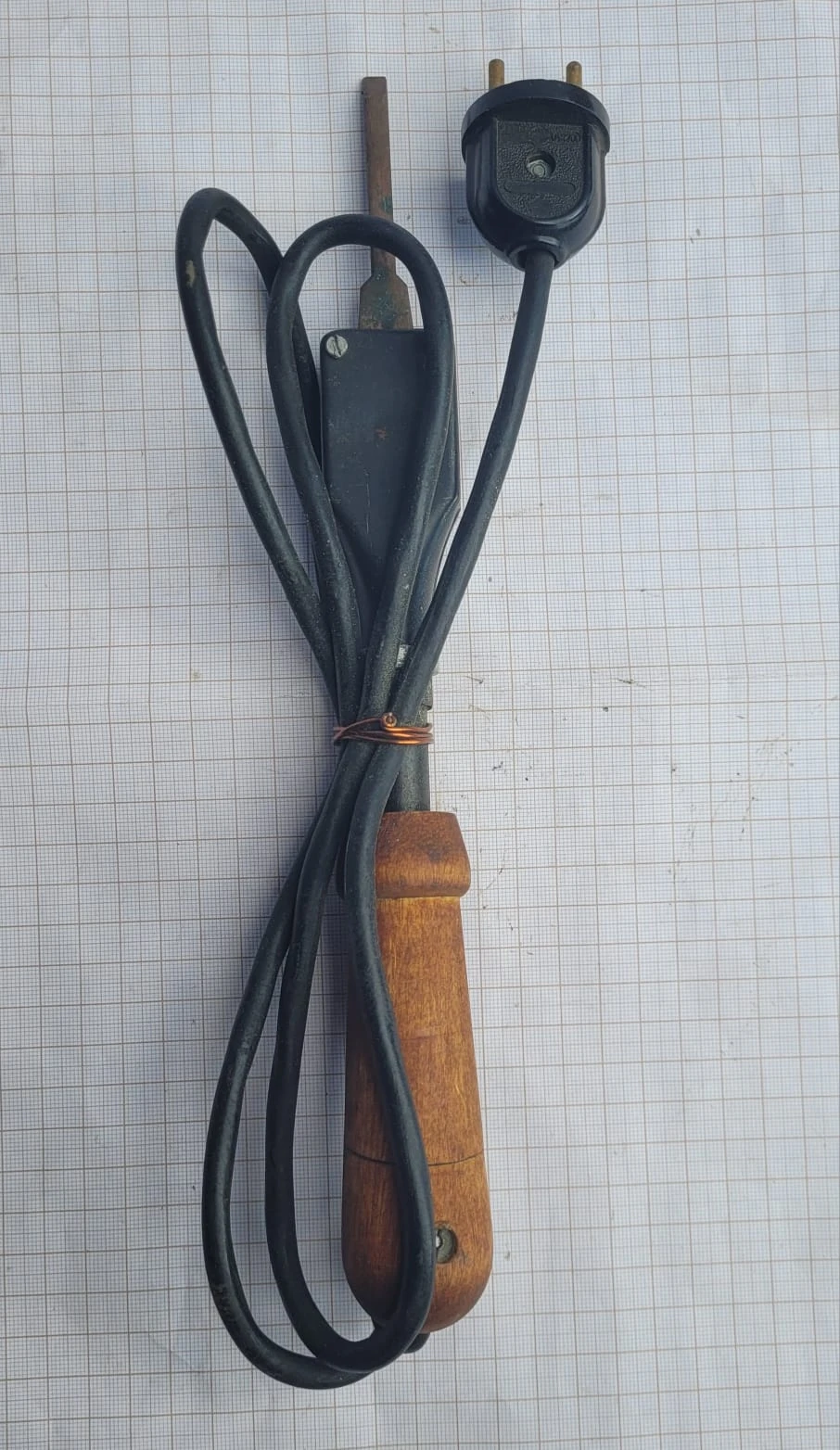 Zabytkowa, ręczna lutownica kolbowa z epoki PRL, przeznaczona do precyzyjnych prac lutowniczych. Klasyczne narzędzie warsztatowe stosowane w serwisach elektronicznych i zakładach produkcyjnych.